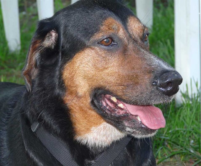 Blackie è il tipico esemplare di cane affettuoso di 8 anni.